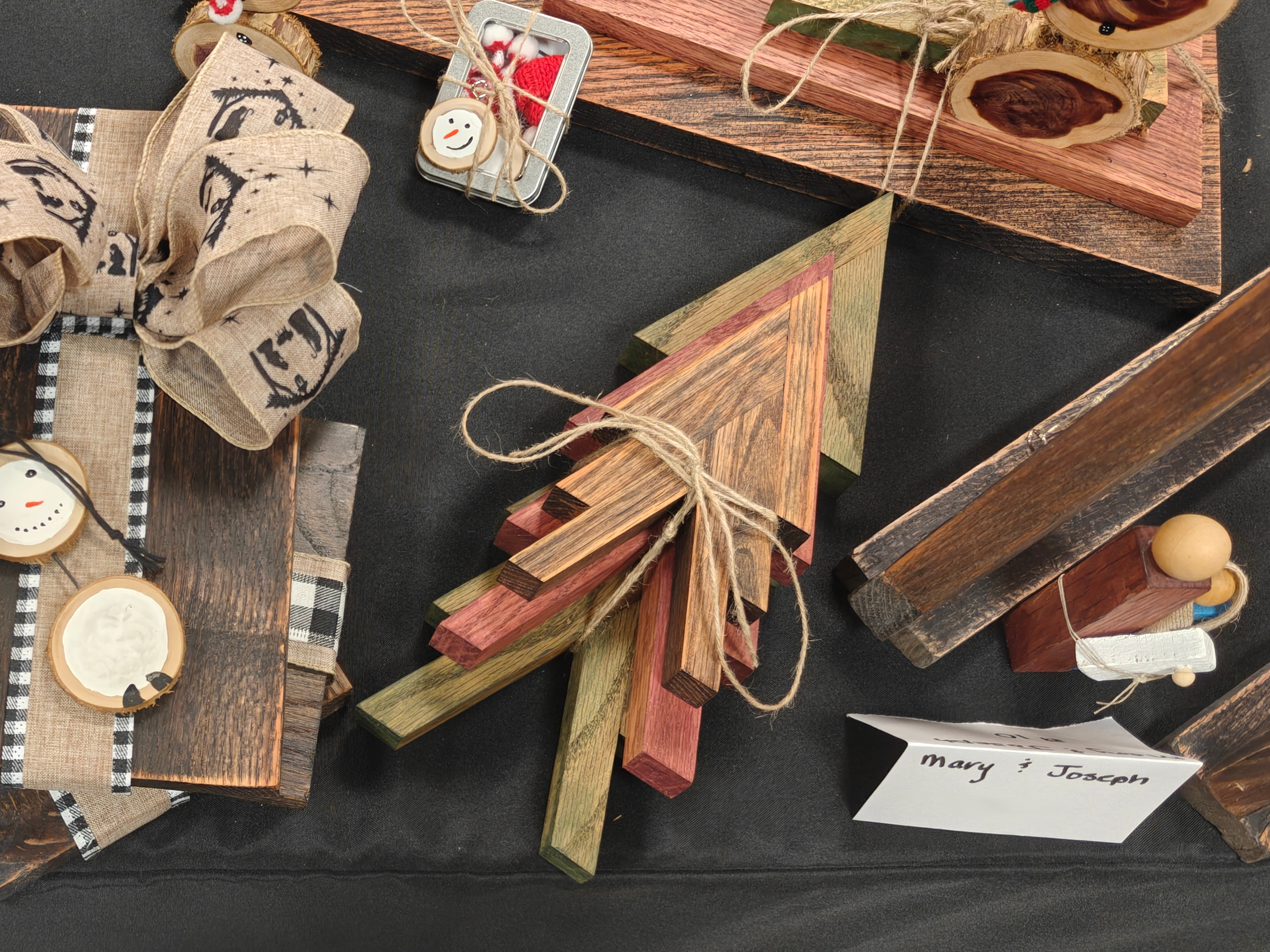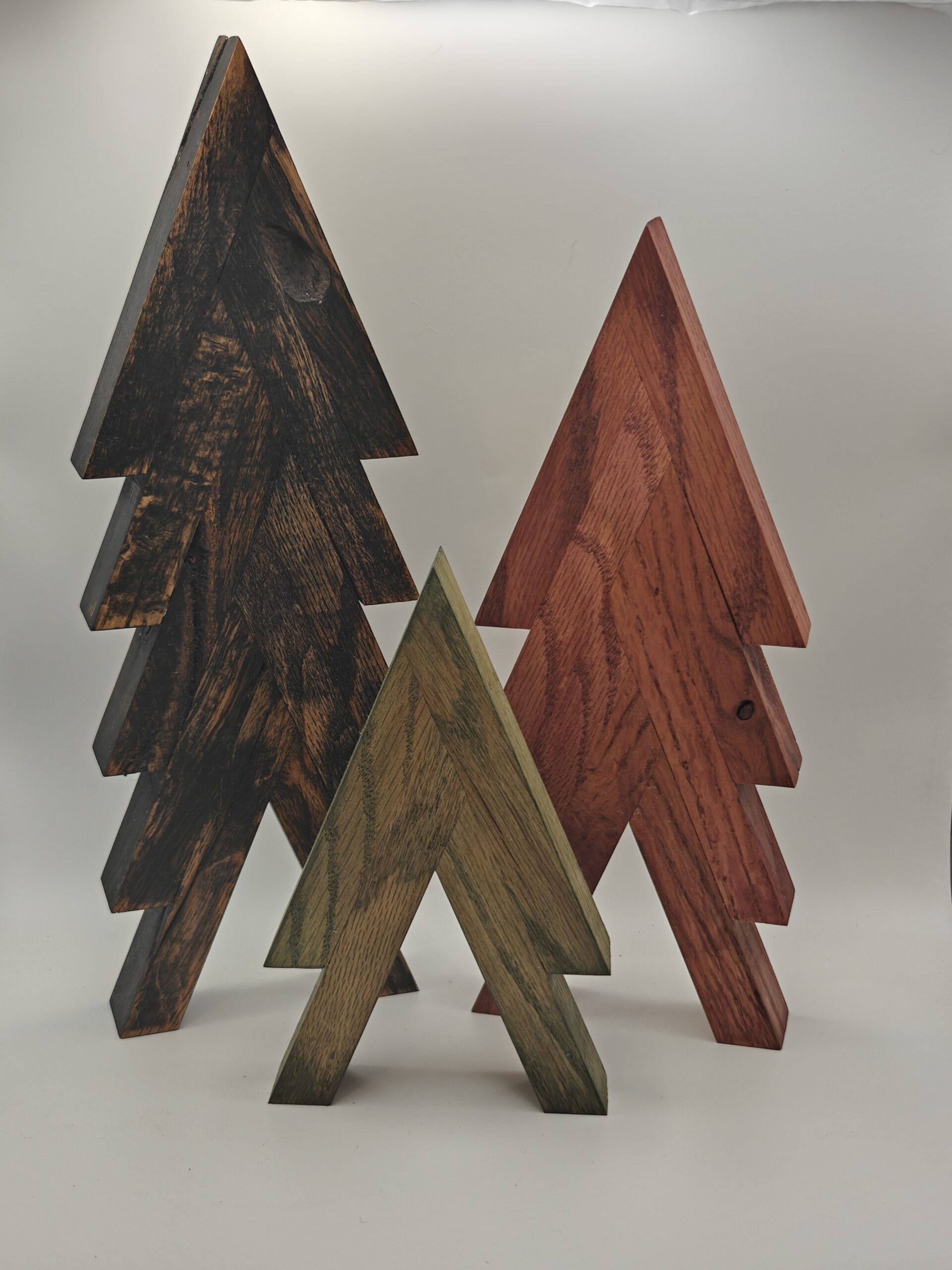 This beautiful set of layered triangle trees is small enough to display just about anywhere. Ranging in size from 4″ to 12″, this three-pack adds a traditional vibe without being overly large or cumbersome. All trees are hand-made from a combination of red and white oak layers. Specifically stained to bring out the various inconsistencies in the wood grain, these pieces show the beauty that only a knobby, knurled hardwood can provide.
